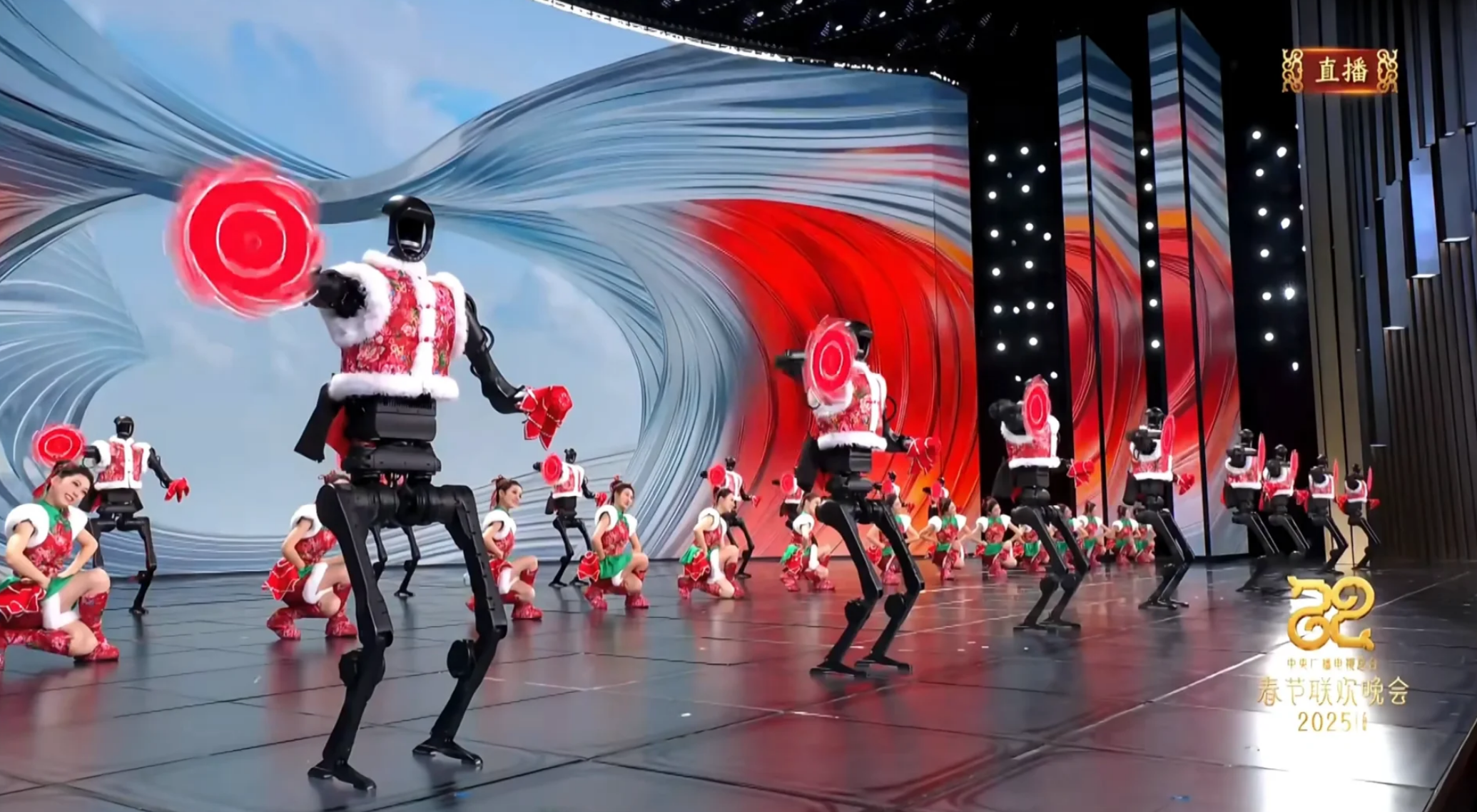 还记得今年蛇年春晚宇树那些扭秧歌的机器人吗?它们穿着花袄、拿着花绢,和真人舞蹈演员一起表演了《秧BOT》这个节目。平时看惯了真人秧歌,突然看到机器人版本,画面实在是太有意思了,连撒贝宁都忍不住打趣说:就差两条眉毛了。