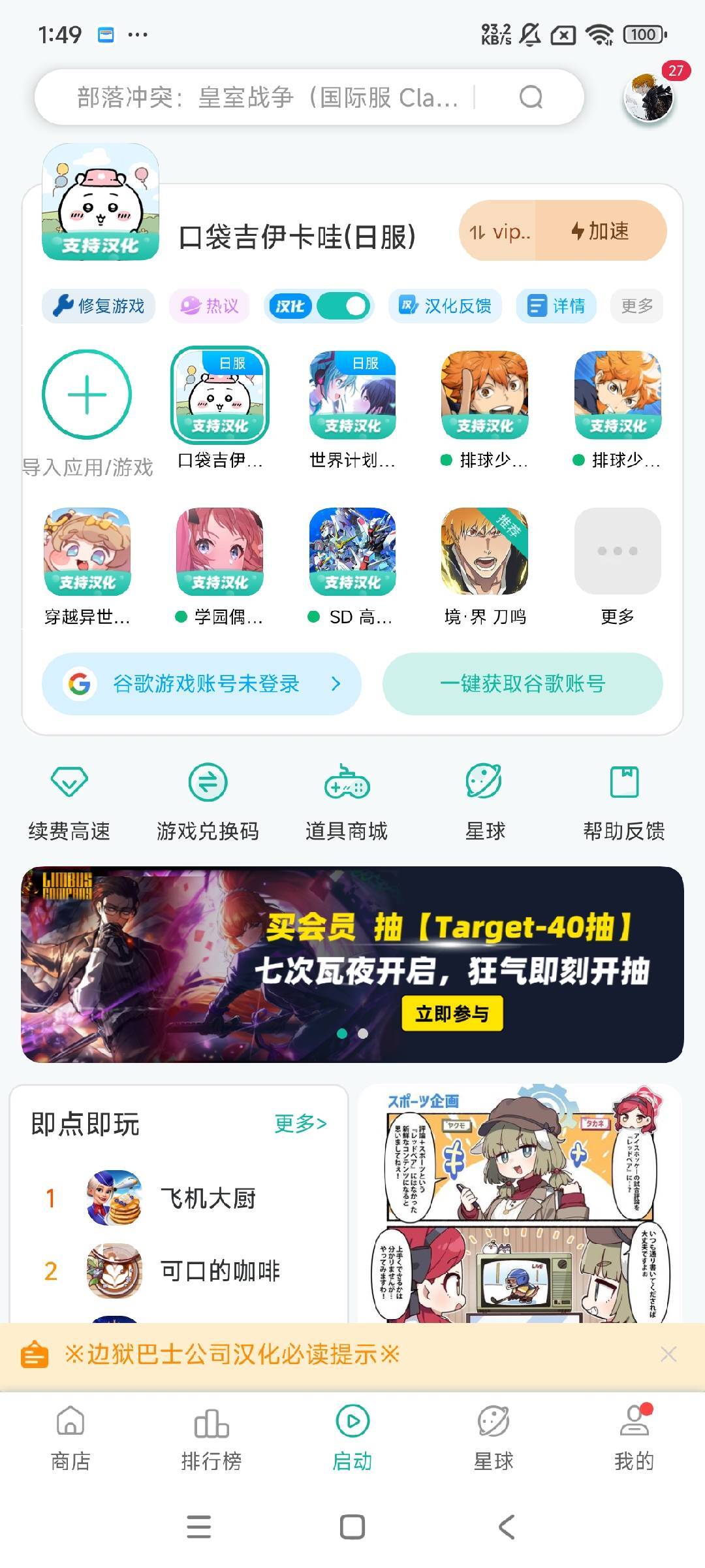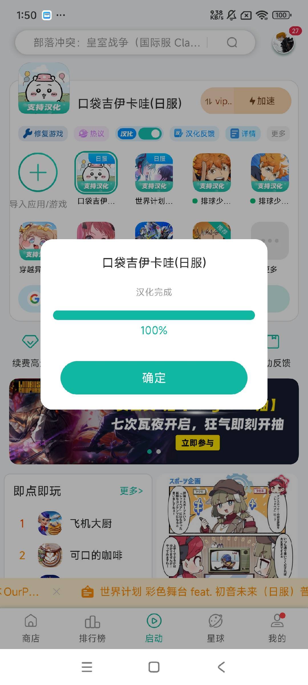 目前口袋吉伊卡哇(日服)游戏的汉化工作已经完成。点击游戏图标后,系统会自动进行加速并启动游戏,这样就能游玩汉化版本的“口袋吉伊卡哇(日服)”了。