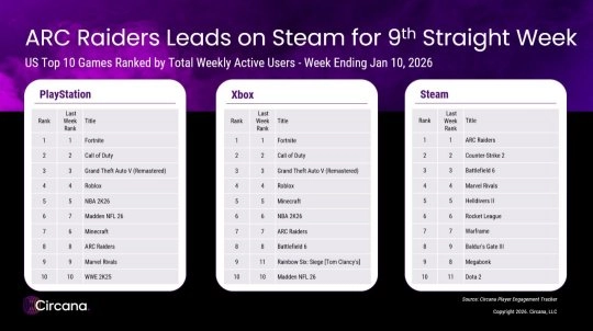 当然,也别忘了现在才刚进入1月,等到本周结束,《ARC Raiders》这次令人惊叹的连胜势头说不定就会戛然而止,紧随其后的《反恐精英》随时都有反超的可能。不过就算连胜纪录被终结,这依旧是个清晰的信号——它正处于势头极为迅猛的爆发阶段,并且眼下丝毫看不到增长放缓的迹象。