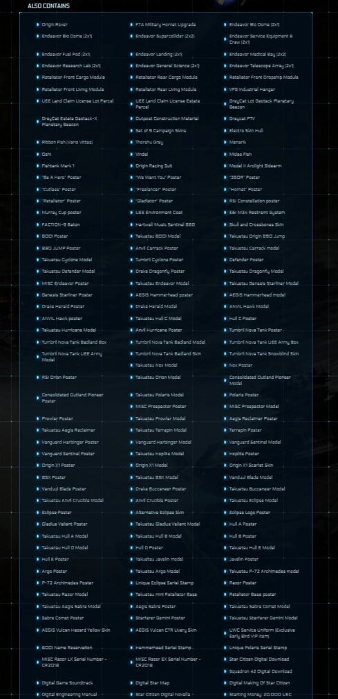 今天发布的《星际公民》DLC包被命名为“将军包”,该名称的灵感源自古罗马军衔。据了解,此DLC的总价值达两万七千美元(约合人民币17万元),里面涵盖了游戏中几乎所有的飞船,以及163项额外的道具和皮肤。