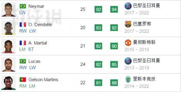 看到这些球员大家肯定都很熟悉吧,都是大家平时爱用的球员。为啥马儿子这么多人喜欢用,还被称作亲儿子呢?82的总评、双4的脚,隐藏特性里有反越位好手、巧射、天赋、技巧带球、善于盘带,看过我前面介绍的朋友应该就明白,这就是他手感好的原因啦。