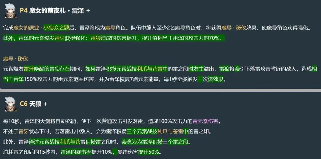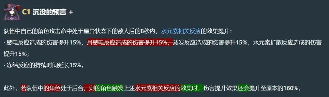 第1命座:删除“月感电反应伤害提升15%”的效果。