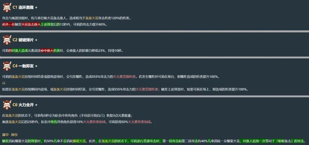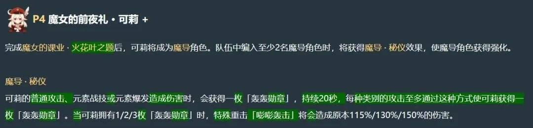 这里说明一下,可莉的这个天赋在V1版本有过大幅度加强,不过当时的技能描述文案比较混乱;到了V2版本,官方对技能文案做了重新梳理,让玩家更容易理解,而天赋的实际效果并没有变化。