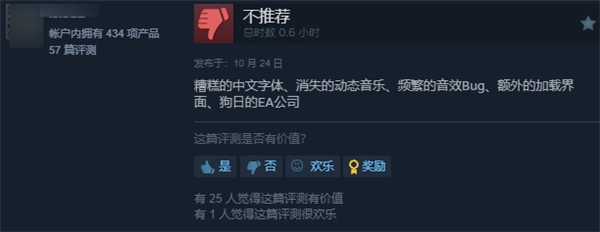 在截稿时,该游戏于Steam平台上的评价呈现“褒贬不一”的状态,好评率达49%,许多玩家对游戏质量欠佳、Bug数量较多等问题提出了吐槽。