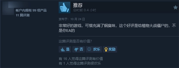 这是一款相当出色的游戏,可惜商业气息过于浓重。我给出的这个好评,是献给经典的《植物大战僵尸》的,并非针对EA。