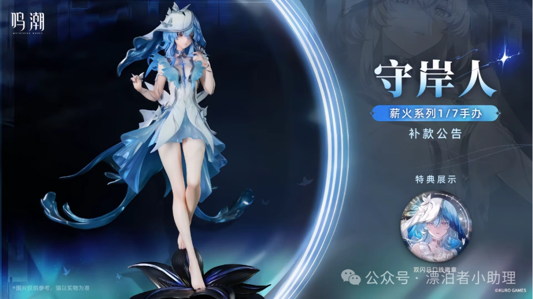 除了仇远相关的新资讯外,鸣潮薪火系列守岸人1/7手办的补款公告也已正式发布。这款手办在细节上颇为考究,精准呈现了守岸人的经典形象。