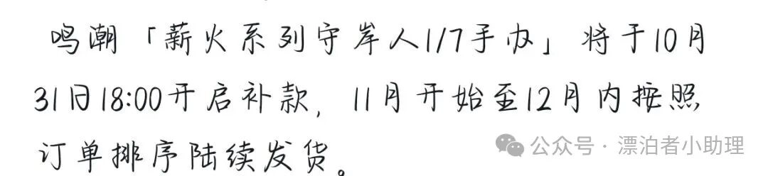 补款通道将于10月31日18:00正式开启,已经下单的漂泊者们别忘了留意时间,及时完成补款,把心爱的守岸人带回家哦!
