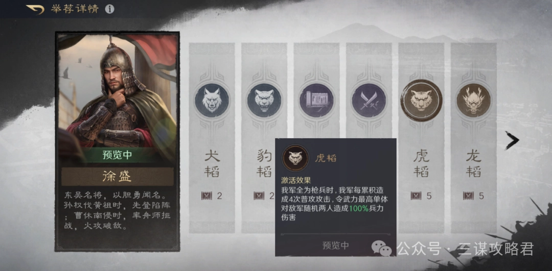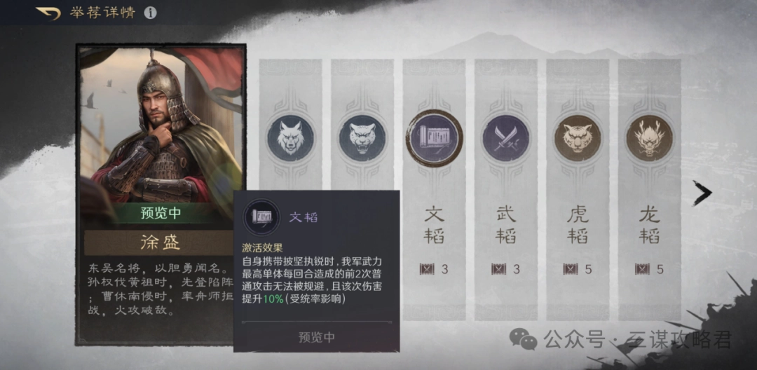 关于徐盛的阵容搭配,大致可以分为两种思路:一种是常规的辅助流,核心战法带固若金汤,强度比较普通;另一种则是全员枪兵的反击体系,而且必须携带披坚执锐这个战法。虽然这套反击体系的战法配置比较固定,对兵种的要求也高(不过S11赛季有虎符可以调整),但经过我多次测试,还是摸索出一套强度不错的反击马超队伍。另外需要说明的是,前瞻服已经进入结算阶段,活跃玩家不多,所以能提供的战报比较有限,还请大家理解。
