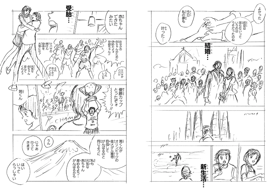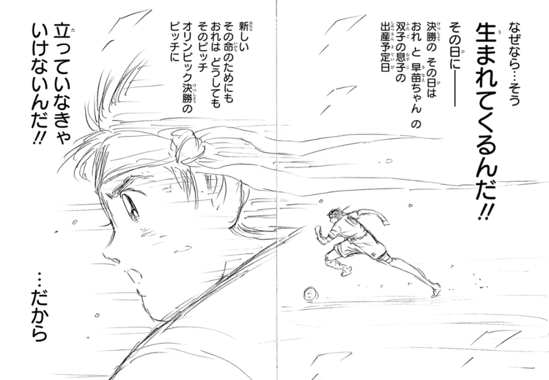大空翼在赛场上也袒露了心声:“因为……没错,就是今天!决赛的日子,恰好是我和早苗那对双胞胎儿子的预产期。为了迎接他们的到来,我无论如何都要踏上奥运决赛的赛场!!”