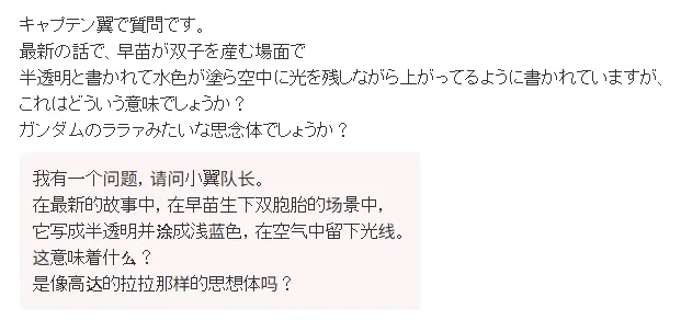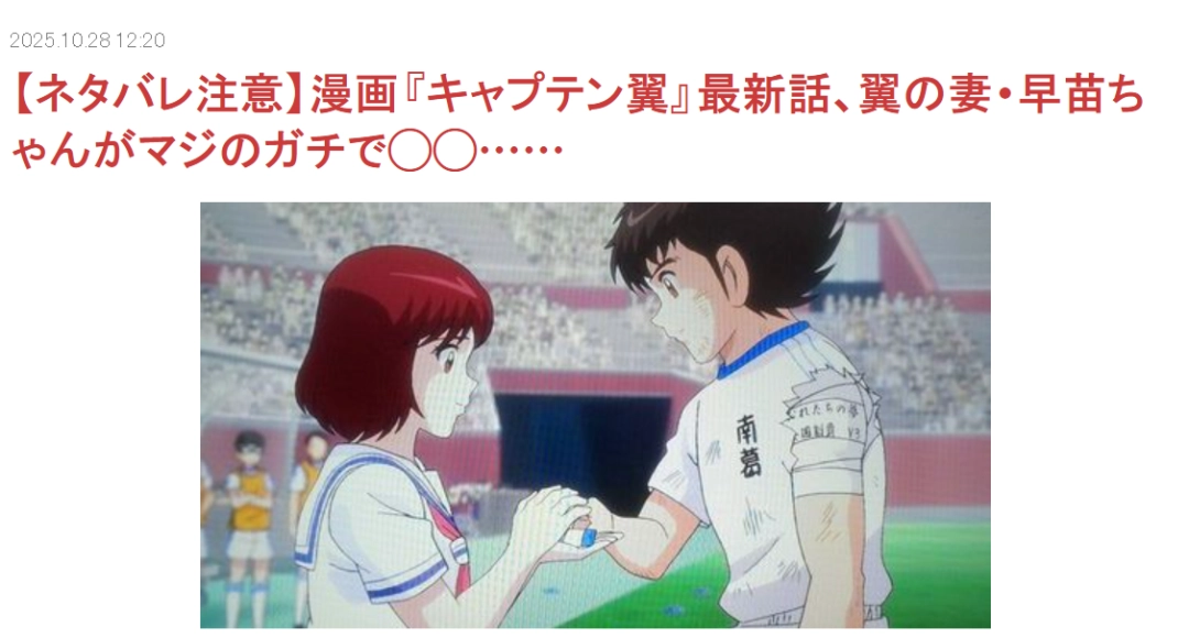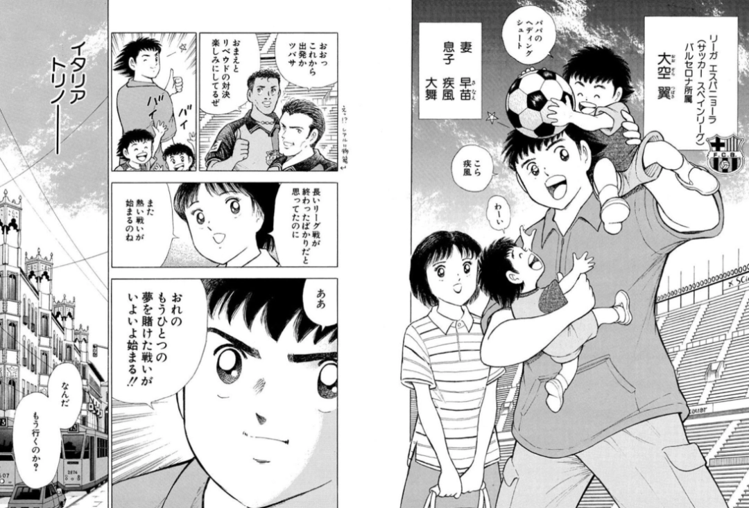 可没想到,就在第50话(今年6月)里,剧情突然撒了一把温柔的糖:主角大空翼的妻子早苗,在他海外征战U-23赛事期间,生下了一对双胞胎!
