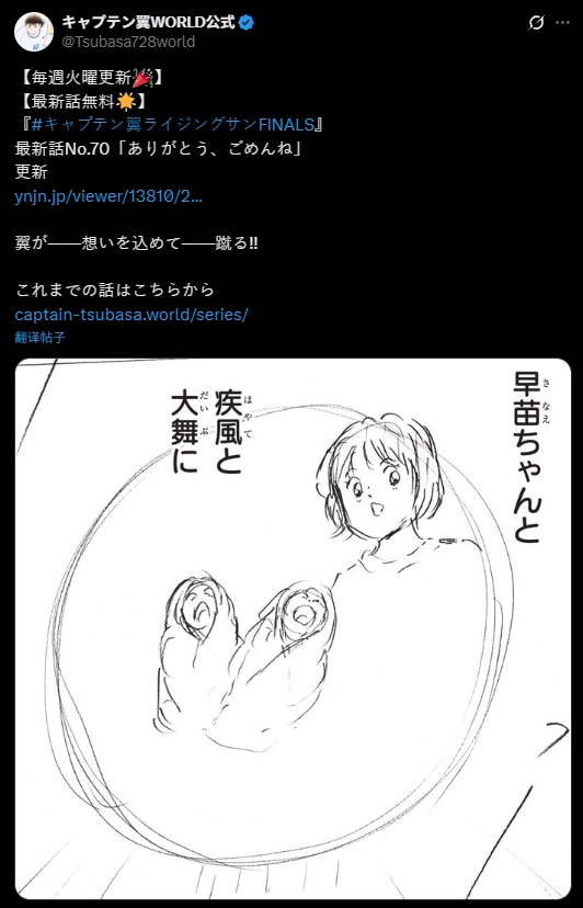 去年1月,《足球小将》作者高桥阳一对外宣布:由于自身身体状况出现下滑,同时受创作环境变化的影响,原计划继续推出的《足球小将 Rising Sun FINALS篇》后续内容,将调整为在「足球小将WORLD」和「ヤンジャン!」两个网站上连载,更新形式也从原本的完整分镜,变更为铅笔线稿呈现。