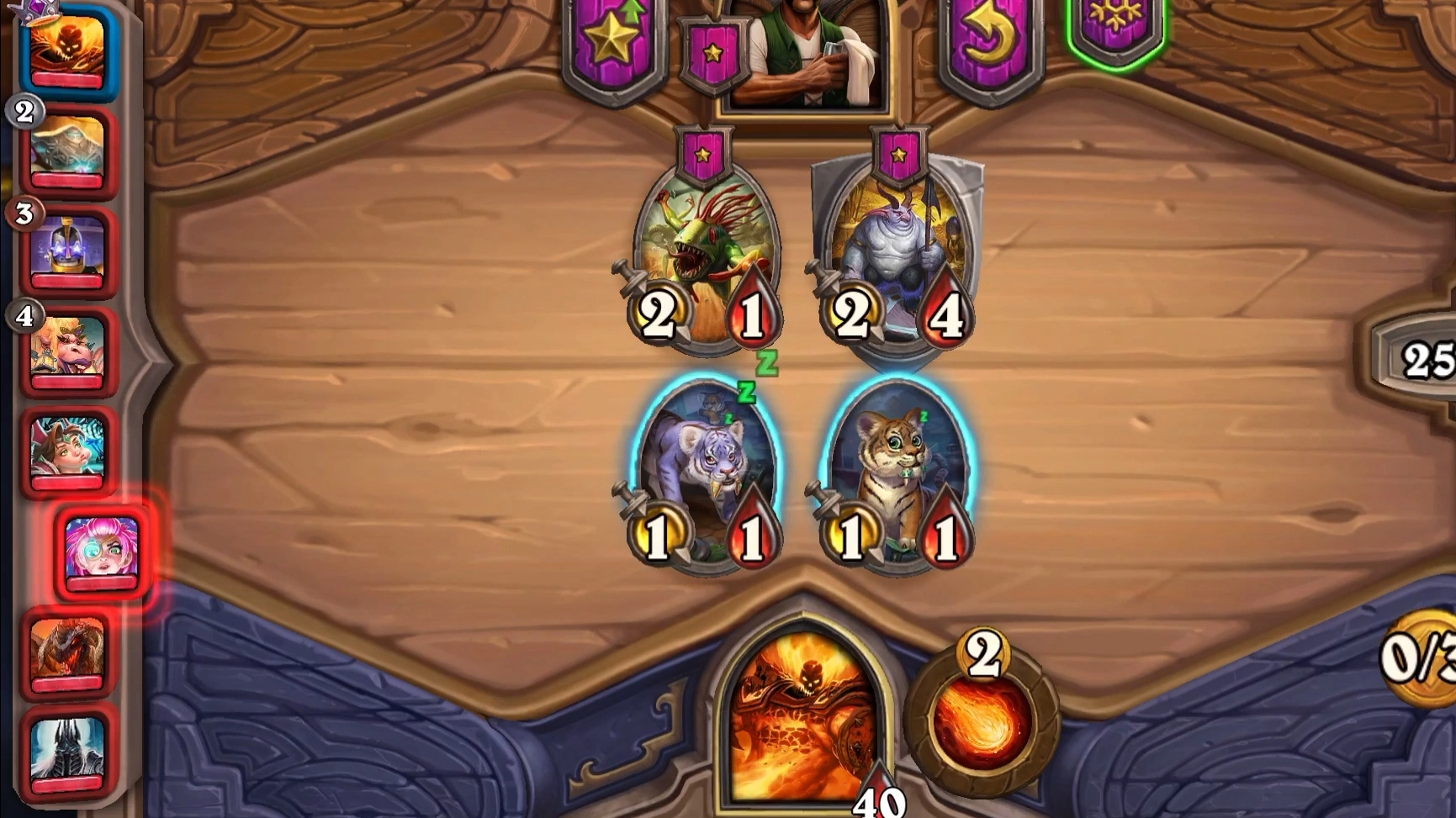 要是有机会,前三回合里务必用一次“死吧虫子!”这个技能。这样能压低其他英雄的血量,让他们在前期很难安稳地过渡和搜牌。在其他英雄正常过渡的阶段,也得放技能去干扰他们。像1.7费回合、2.8费回合、3-3费回合这些节点,敌人可能会升三星、二星或者四星,这时候干扰效果会比较好。