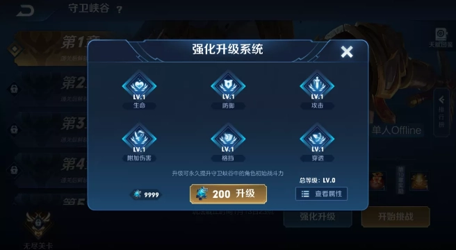 每次成功通过任意章节后,你都会得到强化碎片,这可是提升自身实力的好办法哦。玩家可以进入强化升级系统来调整技能属性,用强化碎片来增加初始属性,这样在该模式的战斗里就能拥有更出色的战斗表现啦。不过要注意,提升后的初始属性只能在守卫峡谷的局内生效,和其他游戏模式没有关系。