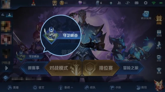 玩家可以在大厅里找到活动玩法的入口,点击该入口就能进入守卫峡谷。