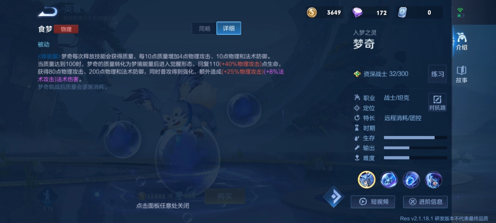 不过,正式服的梦奇在释放技能时,如果能量不足就无法释放出来;但体验服的梦奇却没有这个限制,这意味着体验服的梦奇会比正式服的更加灵活。