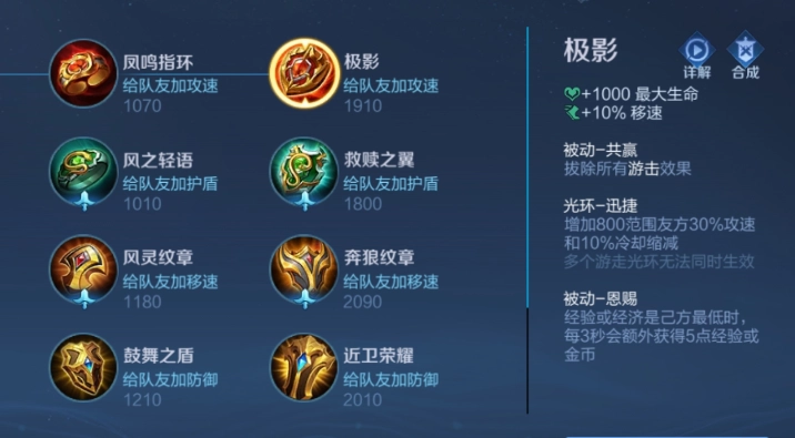 所有王者峡谷的召唤师都清楚,小明堪称射手的“第七件神装”,明世隐的核心价值就在于持续为己方射手赋能,大幅提升其输出强度——只要射手能打出足够伤害,明世隐的使命便圆满达成。至于辅助装备的抉择,极影无疑是最优解:它能为范围内队友加持30%攻击速度与10%技能冷却缩减,完美契合最大化射手输出的需求。只需链子一牵,射手的输出便能直接拉满!