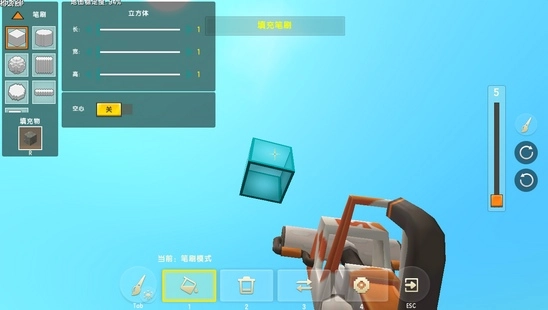 在编辑模式中添加了新道具“地形编辑器”,启用该道具后将进入地形编辑器界面,在笔刷模式下能够快速开展填充、替换、清除等操作。