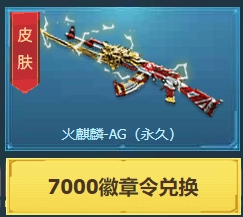 首先我们来看看需要徽章令最少的一把武器皮肤,这把永久的AG火麒麟,需要七千点的徽章令才能兑换,整体缭绕着闪电,仿佛能迸射出满屏雷光,火红色的色调充满杀伤力,而且纤细的枪身看上去很轻盈,盈盈一握的样子没什么重量感。