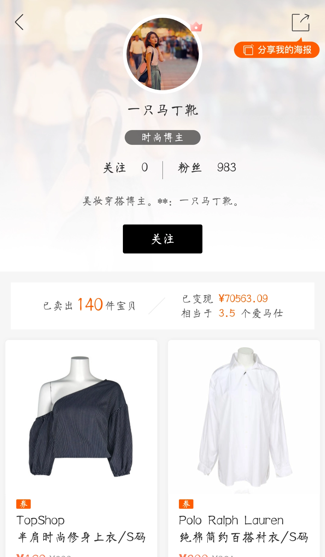 点击优质卖家板块,就能浏览到各类时尚博主;挑选出你心仪的博主后,点击其头像即可进入主页完成购买操作。点击进入商品页面还能查看详细的商品信息,继续向下滑动屏幕则会呈现相关的商品推荐。