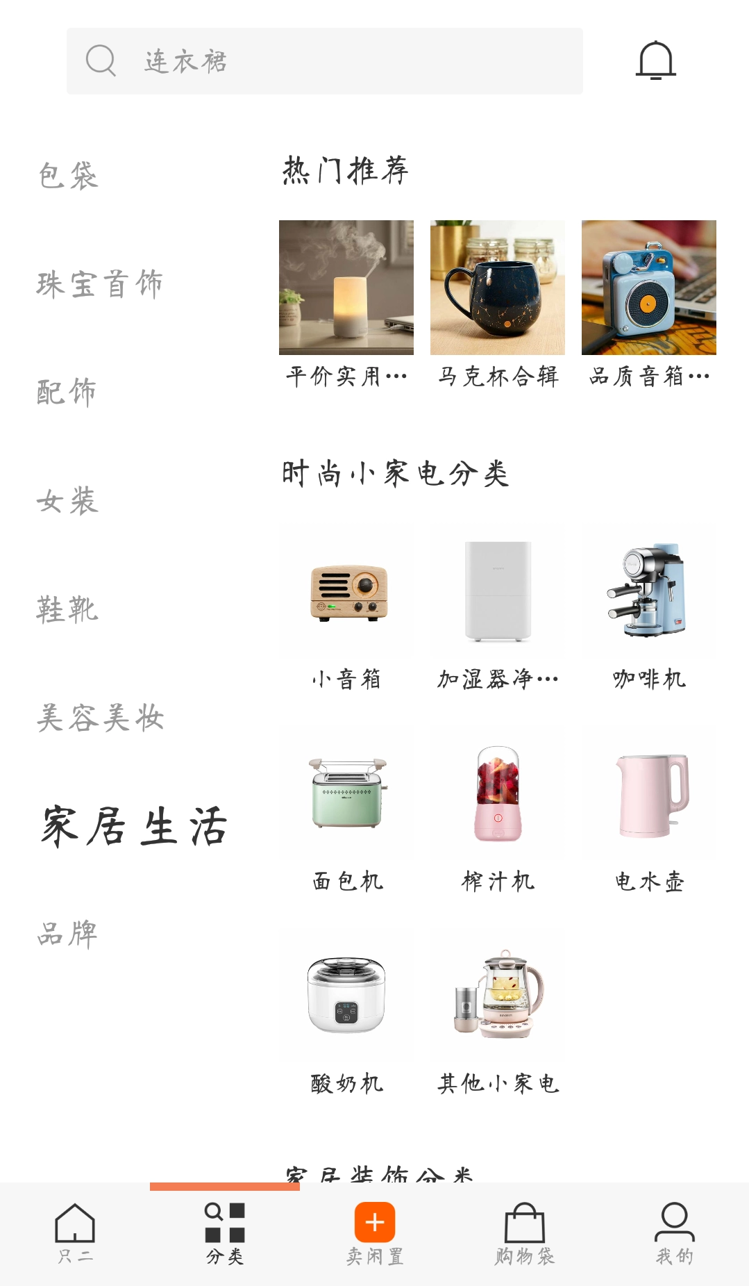 点击首页下方的“卖闲置”按钮就能添加闲置物品,接着选择宝贝所属的分类,上传对应的照片和购买凭证,之后只二平台就会启动审核流程,等审核通过后就可以安排邮寄了。