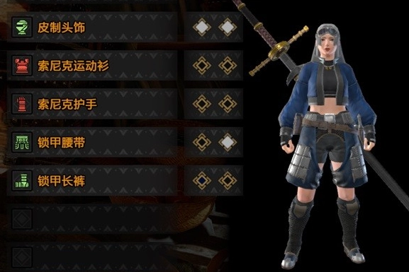 七、潮流舞者套装:包含皮制透视装、索尼克运动衫、索尼克护手、锁甲腰带与锁甲长裤。称其为“舞者”,是因为这套搭配极具现代感,同时带有明显的运动风格。