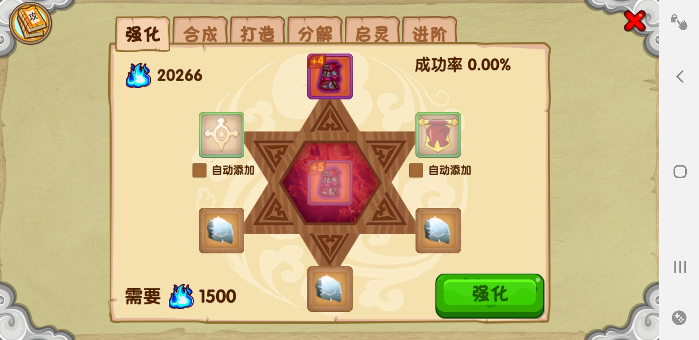 不过神恩符挺稀缺的,咱们得好好规划着用。它大概能提升百分之十五上下的成功率,在装备强化等级比较高的时候作用还挺明显的。不然哪怕用六个六级强化石,强化成功率也低得让人揪心,要是强化失败了那滋味真的太难受了。所以装备强化到加六以上的时候,一定要记得放强化石。