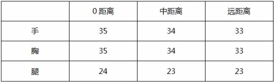 超远距离:胸部伤害33(因距离太远,此伤害不多见)