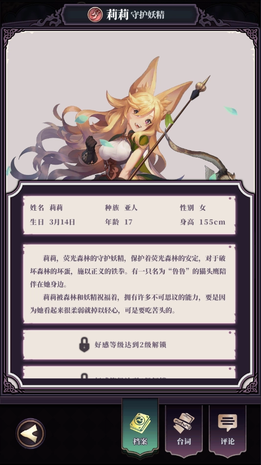 1、莉莉在游戏里的全称是莉莉—守护妖精,属于紫色品质的刺客类英雄。