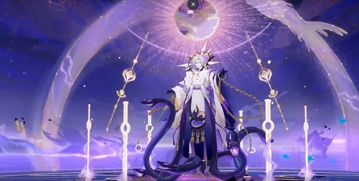 审判仪式:这个技能只能在蛇神状态使用,释放之后可以破除一次封印效果,简单来说先变成蛇身,然后在使用大招破除一次封印效果。大招则是造成aoe伤害。