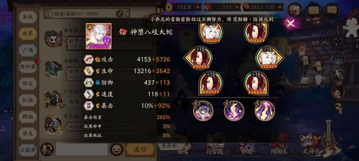 在PVE玩法中,大蛇主要在逢魔和鬼王副本里表现出色。比如选择妖琴师搭配神乐的三拉1火体系时,大蛇若采用速攻爆的御魂配置,就能快速完成变身;当它破除6层封印后,输出能力会变得极强,此时搭配伤魂鸟或针女土蜘蛛的组合,就能无脑挂机释放大招进行输出了。