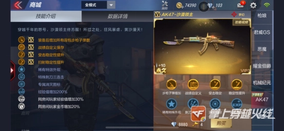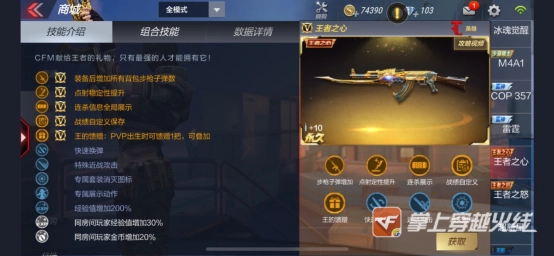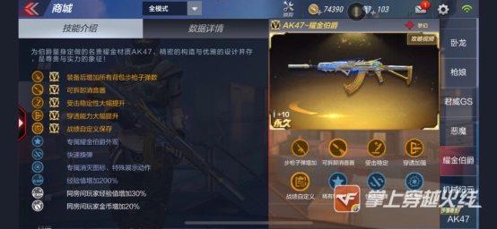 曾经的一AK一哥,增强了射速和稳定性,目前在几把王者耀金武器的对比下,以及CFM原创武器游骑兵的压制下,只能屈居第五的位置了
