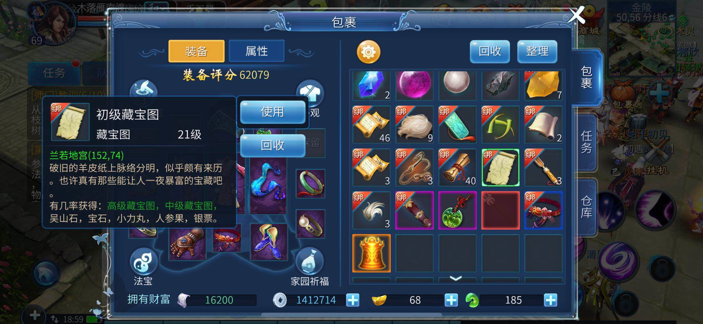 玩家初始获得的是未鉴定的藏宝图,首先需要对其进行鉴定,确认是初级藏宝图还是其他等级的藏宝图。鉴定完成后即可使用,使用后会自动触发挖宝流程。挖宝过程中有时会遇到大拦路鬼之类的野怪,玩家无需理会直接离开即可,这类怪物不会掉落物品。此外,玩家还有可能从低等级的藏宝图中挖出更高等级的藏宝图。