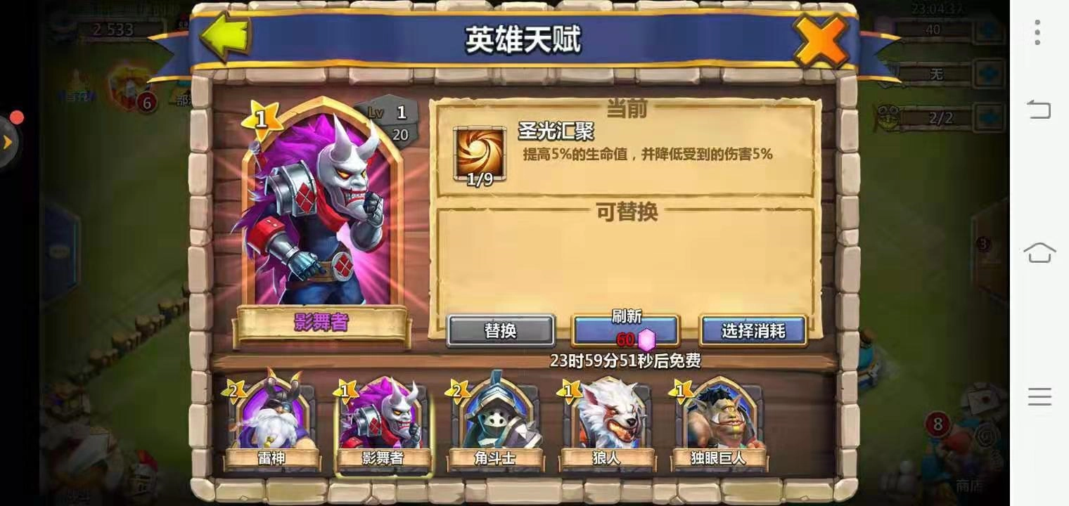 最后一个办法,是获取战斗力更强的英雄。玩家每次登录城堡争霸,都能免费抽一次英雄。接着,要进一步完成英雄的进阶和技能等级的提升,以此增强英雄的战斗力,为战胜单挑怪创造有利条件。