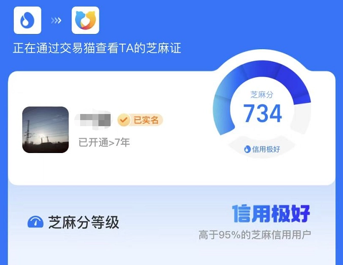 在这里我们能最大程度减少遭遇骗子的可能,毕竟交易猫平台要求卖家必须完成个人信息认证才能发布商品,一旦出现问题,平台能直接定位到具体个人,没人会轻易冒这个风险;此外,我们进入卖家个人中心页面还能清晰看到其专属信用值,这些信用数据均由支付宝授权提供,既专业又可靠。