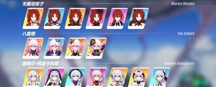 图中的三位角色里,姬子是学员们在学园时期的老师,后来为了救学生琪亚娜付出了生命。八重樱在支线剧情的八重村部分出场频繁,但在游戏中的强度不算突出;德莉莎同样是大家的老师,通常作为辅助角色登场,输出型装甲的表现也比较普通。