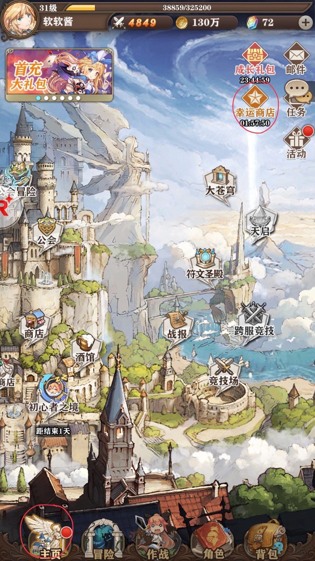 2、幸运商店每次开放仅持续两小时,所以大家不管想买什么都得算好时间,可别等时间过了才想着去买,那可就亏大啦!它出现的时候,主页面会有个红点提示,多留意一下就好。
