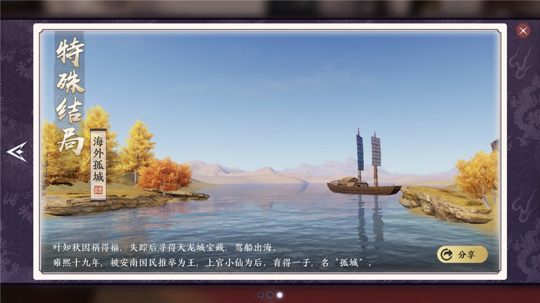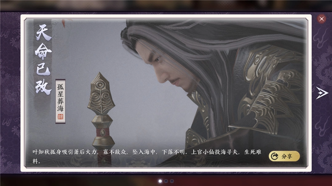 在玩家不同的选择下,改变了叶知秋必死的结局,也让叶知秋完全了他的使命。这就是【外洋孤城】。