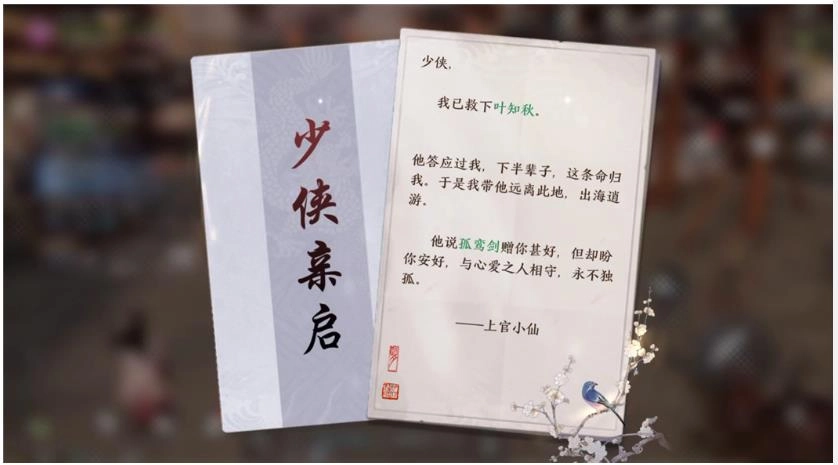 上官小仙领着玩家前往叶家别院,扑灭了火盆并取走木鸟。拿到木鸟后,两人便兵分两路赶往长城遗迹。由于知晓叶知秋最终难逃一死,这段隐藏剧情里不同的选择导向了不一样的结局。