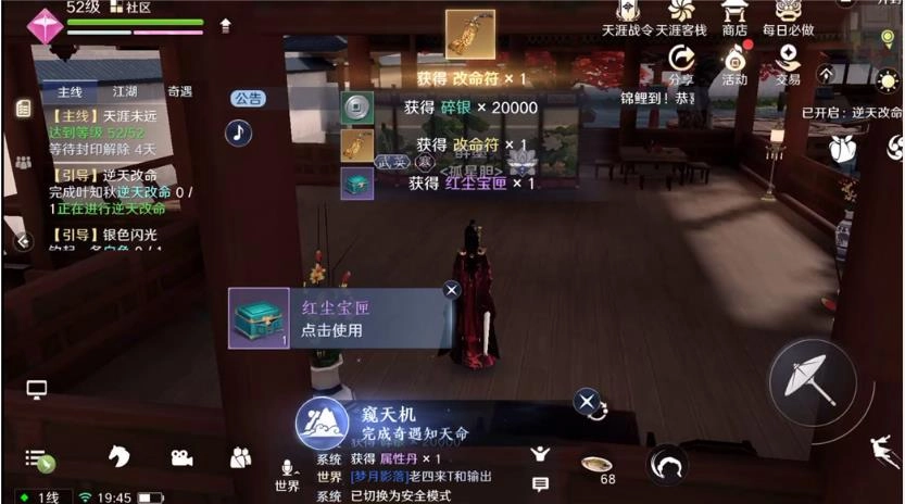 当等级达到52级时,‘逆天改命’系统会自动解锁。在游戏里,该系统包含一项针对叶知秋的改命任务,而完成此任务的前提是拥有改命符。