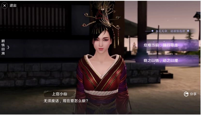 赴命后,剧情时间点又返回了和上官小仙做重要选择题的平阳驿站,从新做出选择