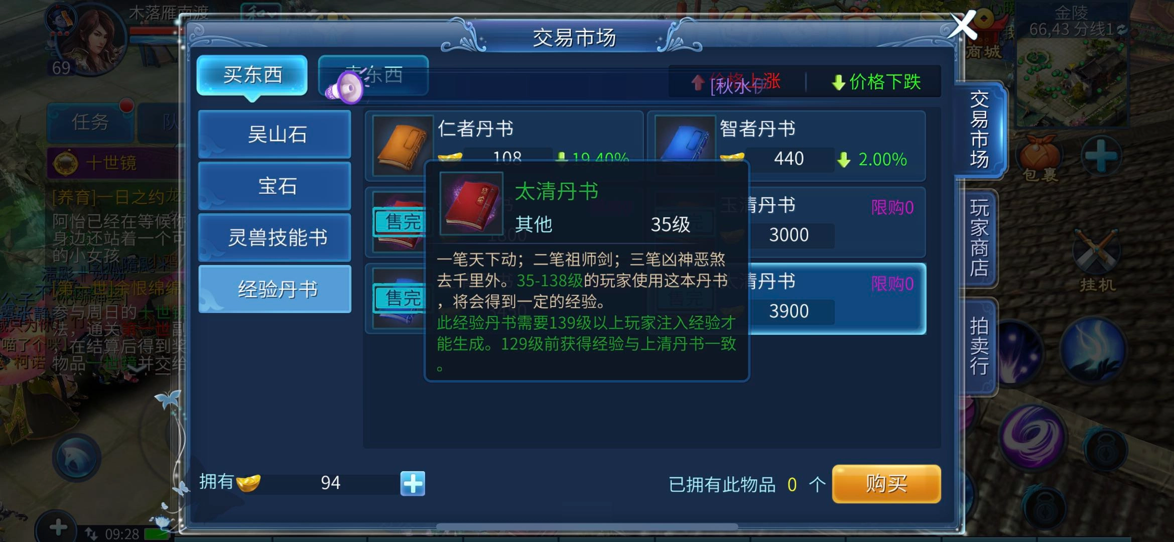 玩家达到三十级后,就能借助经验丹书来获取经验。这种经验丹书是高等级玩家把自身经验注入其中后对外出售的道具,若想快速提升等级,玩家可在易市依据自身等级选购不同的经验丹书,使用后能得到数百万甚至上千万的经验,不过玩家每天最多只能使用四本经验丹书来升级。