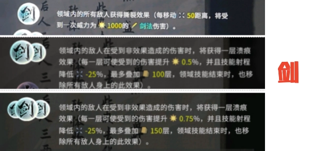 第二层剑魂的效果是,玩家在每次施展绝技时,能对领域内的所有敌人附加一层裂魂状态——每层裂魂会使敌人防御降低50点,该效果最多可叠加至十层;而当领域技能持续时间结束后,敌人身上的裂魂效果也会随之清除。
