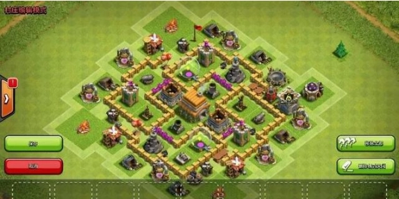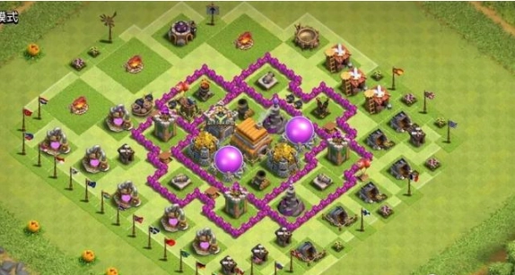 这个阵型针对胖子法师、胖子天使这类胖子流派防御效果特别好,能引导敌军逐步消耗殆尽,对新手来说很实用。阵型左侧有个被箭塔挡住的缺口,不仔细看基本发现不了;整体布局偏左,建议先升级右侧城墙,因为对手通常会从左侧下兵。不过这个阵型的缺点是资源比较集中。