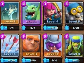 技巧:务必等骗出对面的箭雨再使用飞桶,或是确认对方手牌里没有箭雨,亦或是对方圣水刚好用完,如此才能让飞桶的伤害达到最高。