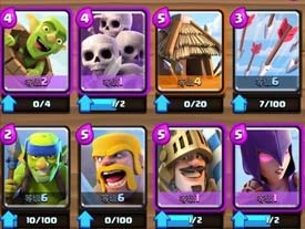这套卡组以防守型卡牌为主,搭配少量进攻型卡牌。这么说是因为骷髅海在防守端的应用频率最高,它常以人海战术围剿地面部队;而一旦骷髅海未被敌方防守单位阻拦,就能对防御塔造成重创——低级骷髅海足以打残一座塔,等级稍高的甚至能直接推平一座塔。