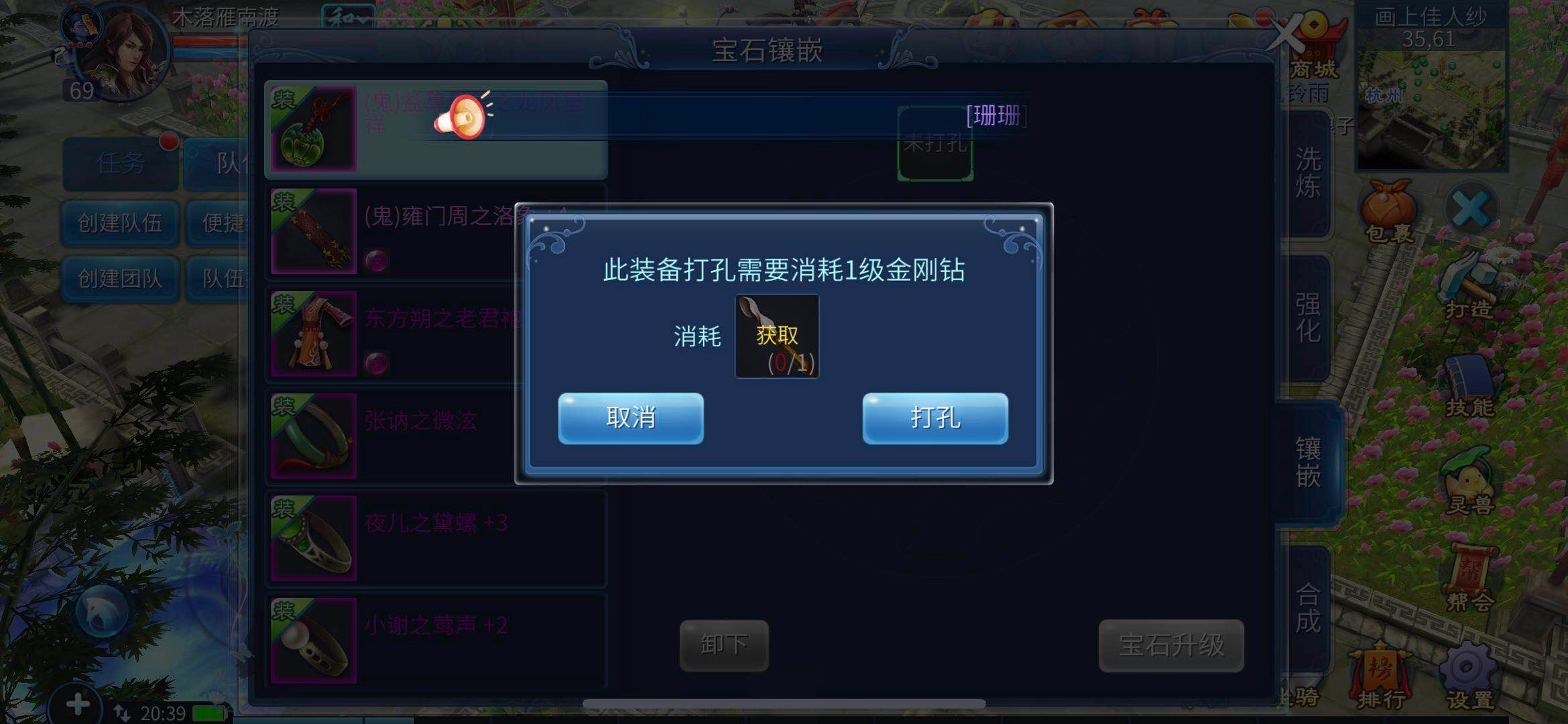 玩家集齐金刚钻与装备后,即可进入打造页面为装备打孔。由于一颗金刚钻仅能为装备打一个孔,因此若想镶嵌石之灵,玩家需多准备些金刚钻才行。