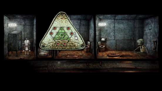 逃进下水道的机器人,利用之前得到的水龙头与扫帚组装成的工具,再次打开一个井盖后,就能抵达另一个有机器人警卫把守的房间了。