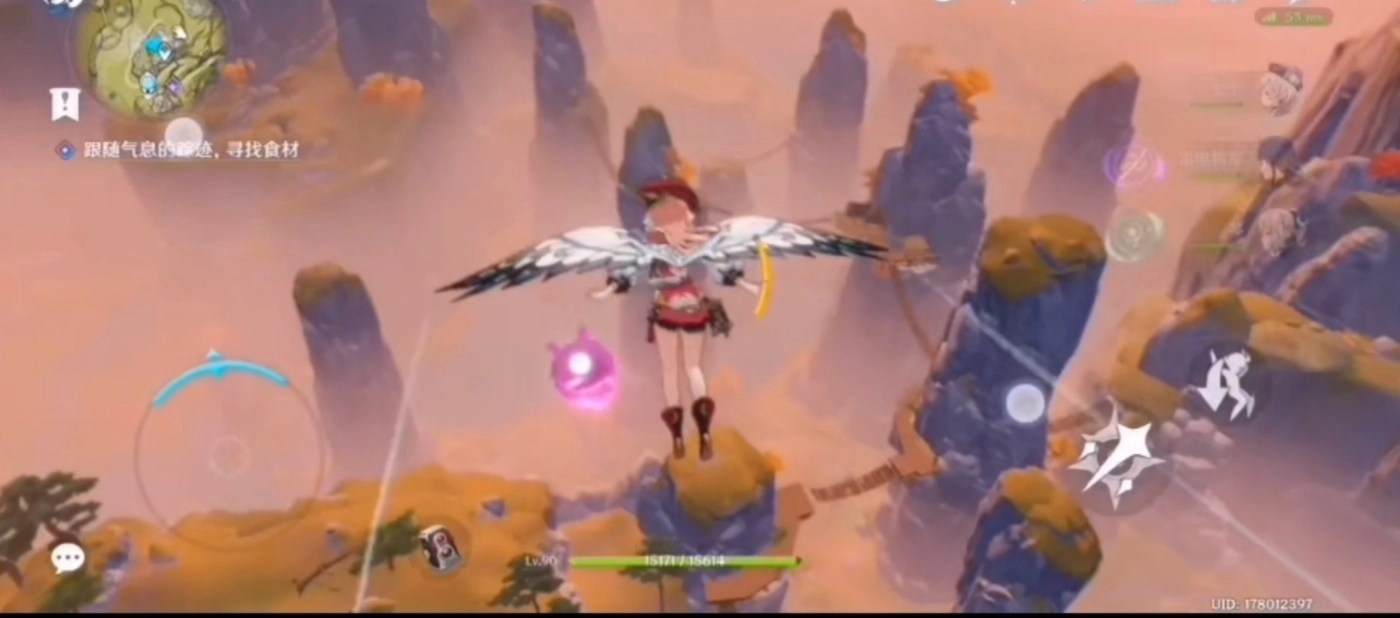 首先,若要完成“跟随气息踪迹寻找食材”的任务,玩家需找到关卡中的NPC留云借风真君,与该任务NPC完成对话后即可正式开启任务。任务区域内会出现金色风痕般的指引,玩家需沿着地图上金光的反方向飞行,途中会看到一处山崖,跳下后借助风的托举,便能抵达两座桥中间的山崖之上。