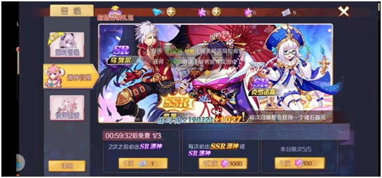 还有一个简单的办法是召唤源神。进行源神召唤时,你可以选择免费召唤,这种免费召唤需要每隔一段时间才能进行一次,而且要召唤7次才会出现一个SR品质的源神。