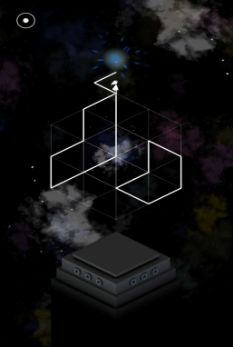 四、再次回到出生场景,进入中间平台的传送门,就能抵达新场景。这个场景初看似乎没有头绪,但玩家只要随意操作几下,就会发现艾达的移动路线是沿着图中的白线行进的。因此,只需转动下方的机关,通过旋转白线让艾达到达最高处,就能解开这个房间的谜题了。